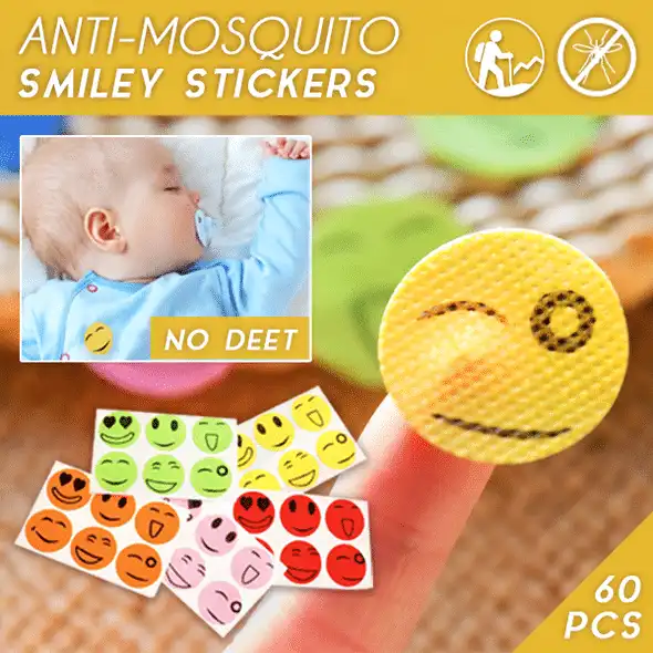 PAKKET OMVAT: 1 x anti-muggen smileystickers (60 stuks)