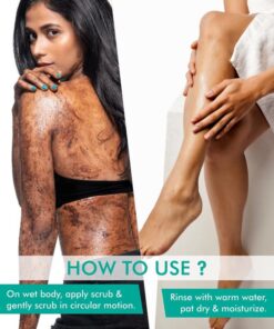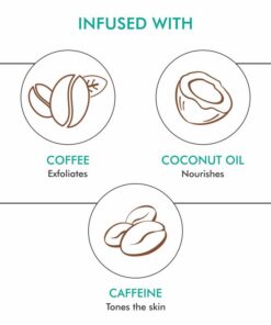 - Ingrediënten: Biologisch koffiepoeder, Dode Zeezout, Olijfolie, Zoete amandelolie, Arabica-koffiezaadolie, Kokosolie, Biologische sheaboter, Cacao-extract, Arabica-koffiebonen